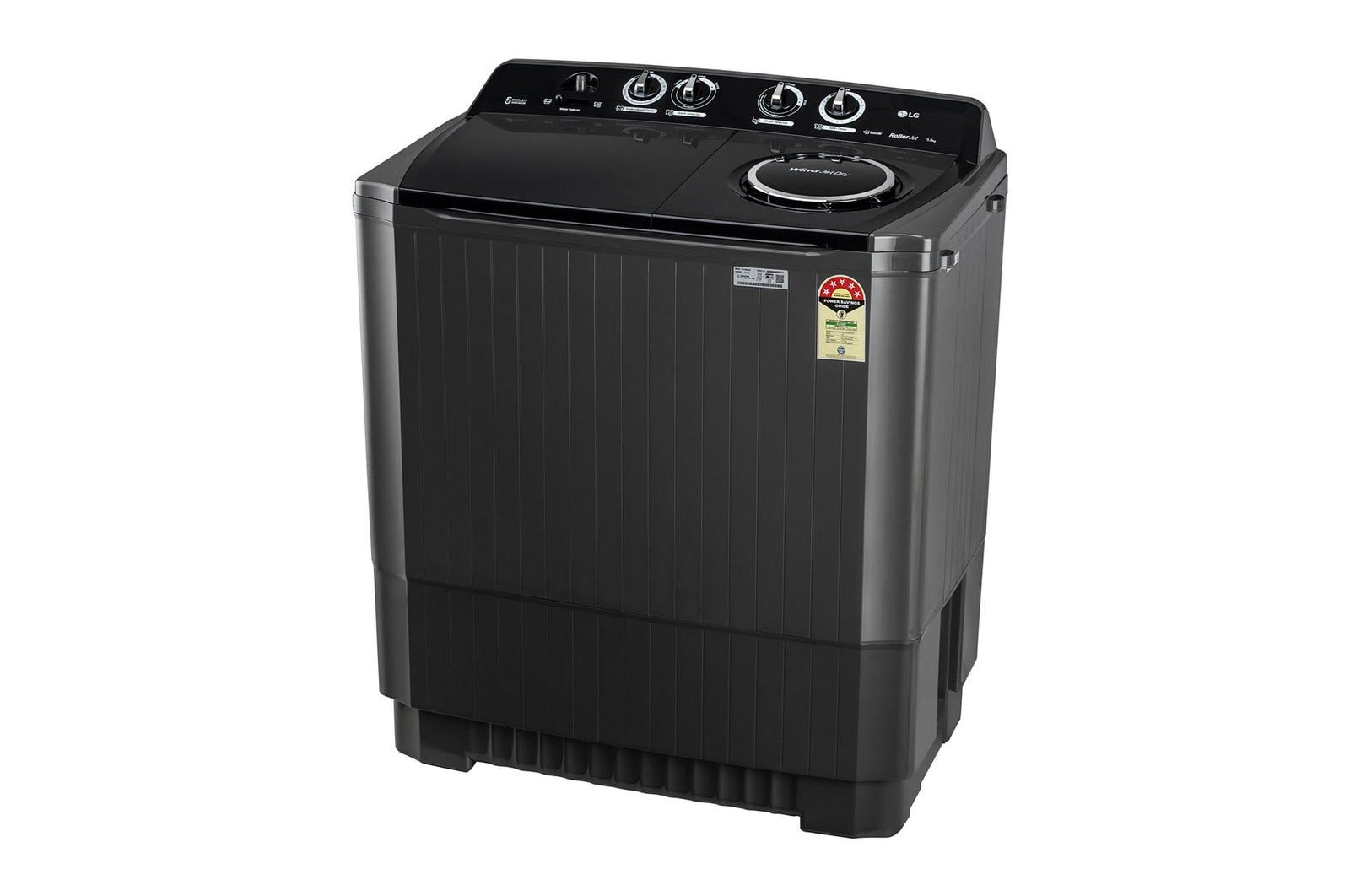 LG 11.5 kg 5 Star Semi Automatic Washing Machine with Wind Jet Dry Technology (P115ASLAZ, Full Black)