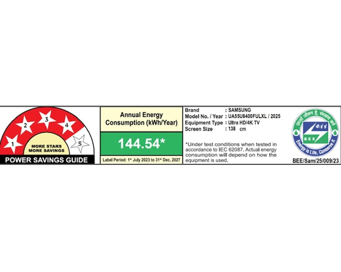 Samsung |139.7 cm (55" ) 4K UHD LED Smart TV| Crystal Processor 4K | HDR10+| Motion Xcelerator|OTS Lite & Q-Symphony Audio | Gaming Features (ALLM, VRR, HGiG) |Tizen OS |Alexa | Bluetooth 5.2 |3 HDMI & 1 USB |3-Bezel-less-UA55U8400FULXL