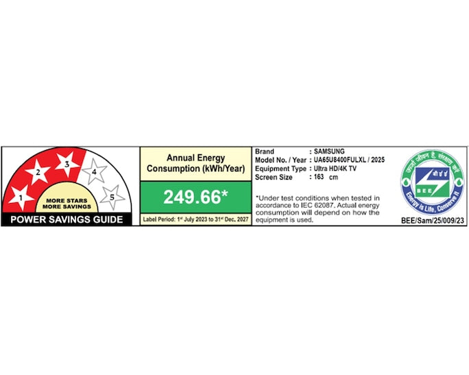 Samsung|165.1 cm 65" 4K UHD LED Smart TV | Crystal Processor 4K | HDR & HDR10+ | Motion Xcelerator | OTS Lite & Q-Symphony Audio | Gaming Features (ALLM, VRR, HGiG) |Tizen OS | Bixby, Alexa |Bluetooth 5.2 |3 HDMI & 1 USB-UA65U8400FULXL
