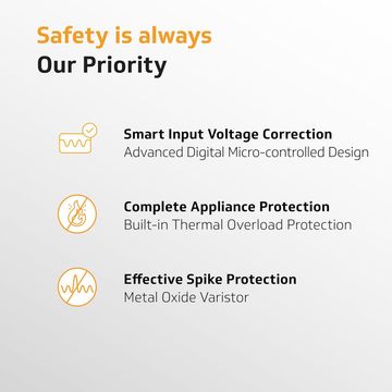 This voltage stabiliser ensures continuous operation by correcting the output voltage without any breaks. Thus, this feature ensures that your TV, set-top box, and home theatre system run smoothly without any interruptions.