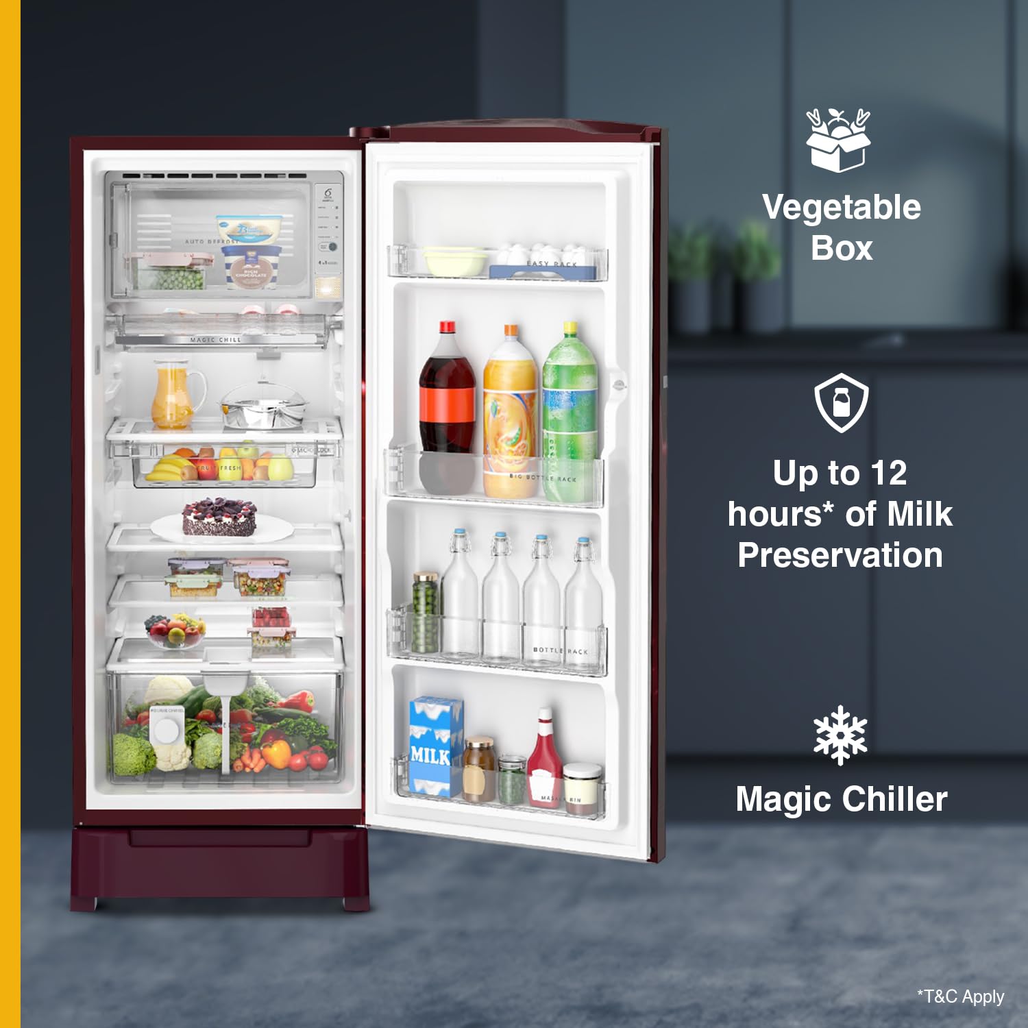 Refrigerators come with sturdy and durable toughened glass shelves that are built to take the load of your everyday needs